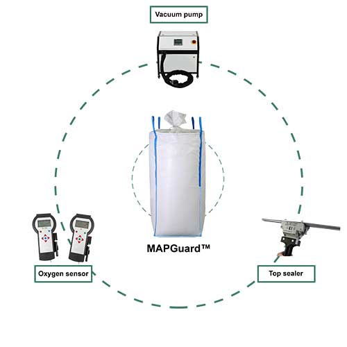 MAPGuard™ brings the benefits of the MAP technology to the world of Flexible Intermediate Bulk Packaging (up to 1500 liters), consequently enabling financial savings to the customer via economy of scale.